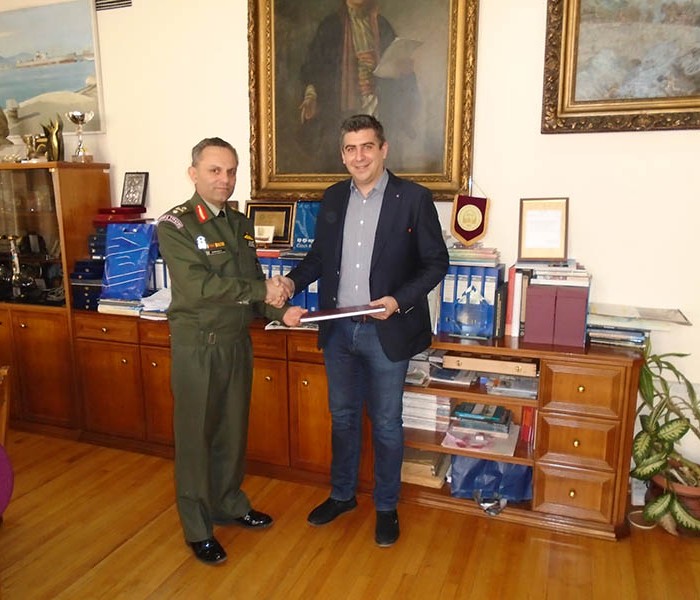 Εθιμοτυπική επίσκεψη στο γραφείο του ασκούντα καθήκοντα Δημάρχου Βόλου κ. Αθανάσιο Θεοδώρου πραγματοποίησε χθες Τρίτη 19 Απριλίου 2016 ο νέος Διοικητής της 32ης Ταξιαρχίας Πεζοναυτών, Ταξίαρχος Αναστάσιος Πάτσαλος. Ο κ. Θεοδώρου συνεχάρη τον Ταξίαρχο